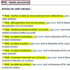 depuis le raccourci « FAQ » de la page d’accueil, ici surligné en jaune, ouvrant 3 raccourcis