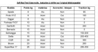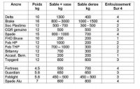 | Résumé de V&V mai 2003 Le tableau montre la tenue au dérapage dans le sable et le gravier exprimé en kg (force). Résultat remarquable pour la CQR qui est souvent décriée par les temps modernes ! |