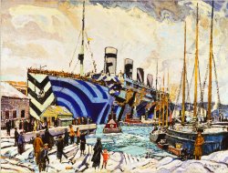 En 1918, John Everett, peintre de marines, reçoit du ministère de l’Information britannique l’autorisation spéciale de représenter des scènes fluviales à Londres. Everett tombe alors sous le charme du camouflage disruptif de certains navires et décide de les peindre.