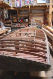 La première chose que nous avons faite après son arrivée dans l’atelier, a été justement de ne rien faire ! Il faut prendre le temps d’établir un diagnostic complet. Nous avons d’abord nettoyé le bateau (intérieur et extérieur) afin de procéder à un examen minutieux, notamment en nous glissant dans la pointe avant. Cela nous a permis de constater que le bateau était en plus mauvais état que nous le pensions. Le bilan n’est pas optimiste.