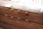 - Les aboutissements du bordé présentent des réparations dont la répartition et la solidité sont à revoir. Au total quelques vingt mètre linéaires de bordé sont à reprendre.