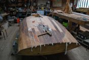 Pour le reste des pièces de charpente, le choix est fait de conserver le maximum du bois d’origine lorsque c’est possible, quitte à nous compliquer la vie plutôt que de refaire une pièce entièrement. La majeure partie de la structure du cockpit est à refaire (élongis, jambettes). Le seul point sur lequel nous n’avons pas établi de choix à priori a été le puits de dérive. Il nous faut attendre d’avoir déposé une partie des pièces anciennes pour décider quoi faire. Après une première tentative infructueuse la seconde a été confiée à un charpentier ami qui n’a pas économisé, ni son temps, ni les différents gabarits de guidage, pour réaliser une jonction parfaire sur la coque