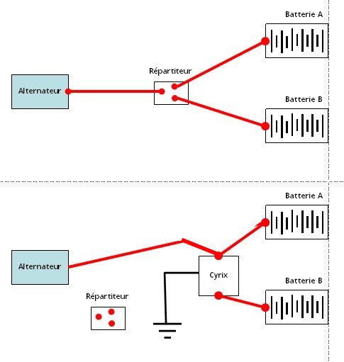 La borne de charge de l’alternateur alimentait les deux batteries en //.