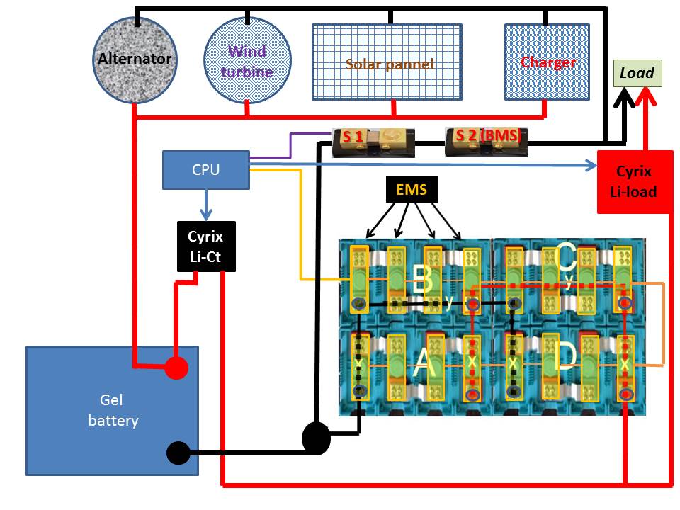 Je vous invite à lire en particulier le paragraphe qui concerne les risques d’incendie si la charge est contrôlée par le BMS et que celui-ci tombe en rideau. Ca fait un peu peur (incendie très difficile, voire impossible à éteindre et je me remémore les ennuis de ce genre rencontrés sur différents avions modernes, comme le Boeing Dreamliner). Il semble donc qu’il vaille mieux se passer du BMS (c’est ce que conclut l’auteur) mais cela implique que tous les moyens de charge —voir liste ci-dessus— soient à courant constant avec coupure totale de charge lorsqu’un potentiel et une intensité très précis sont atteints (sinon, adieu la batterie et, pour une forte surcharge, risque d’incendie évoqué plus haut).