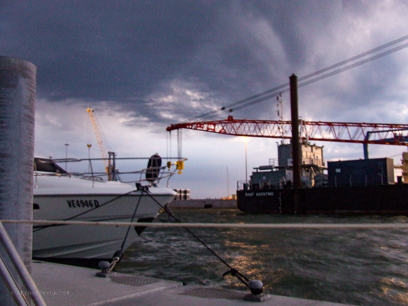 L’entrée de Port de Chioggia se situe entre deux digues s’étendant à l’est de la longue pointe de terre protégeant la lagune du large. Un brise-lames isolé, en forme d’arc, protège l’entrée des vents de SE, on peut passer de chaque côté pour embouquer le chenal. - Les profondeurs dans le chenal principal sont de 6,5 à 8,0 mètres mais seulement de 4,0 à 5,0 sur les côtés. Mieux vaut serrer le brise-lames nord, en donnant du tour (200 m) aux extrémités des brise-lames pour parer un ballastage dangereux.