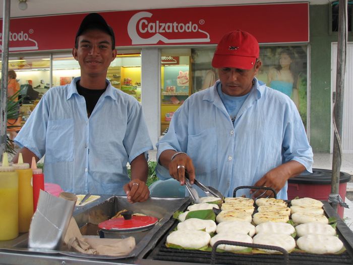Avec en fond de tableau les statues du sculpteur local BOTERO, nous allons re-découvrir les arepas. Re-découvrir ca ril s’agit aussi d’une spécialité vénézuélienne.