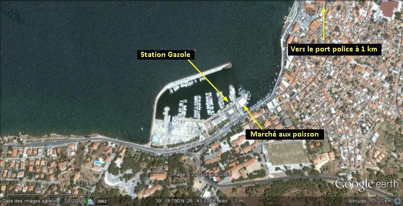 - Ayvalik est un port d’entrée et de sortie, on y trouvera tous les services administratifs, mais regroupés au nord de la ville, à côté d’un nouveau petit quai, où l’on n’est pas certain de pouvoir accoster. Situé à 1,5 km de la marina, on aura peut être intérêt à choisir un agent en douane…