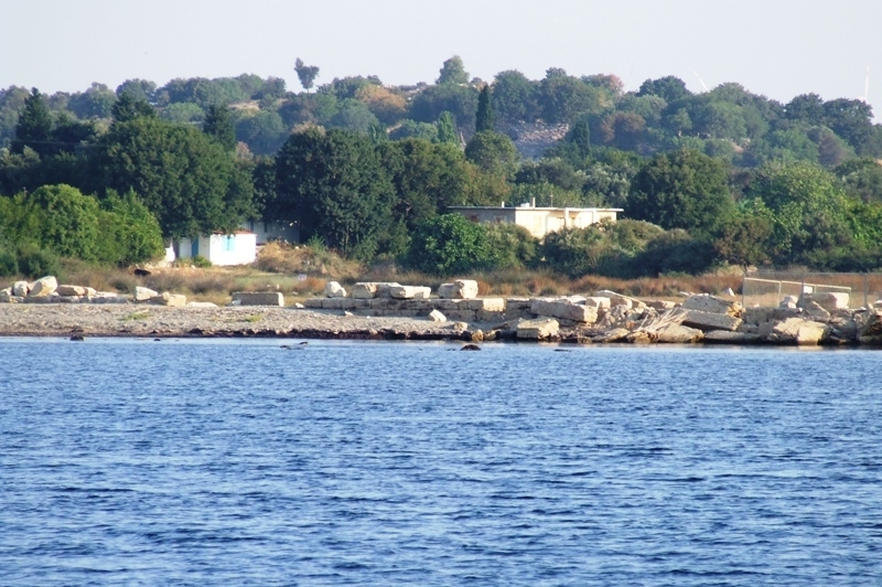 Il ne reste que des pierres cyclopéennes du môle antique. La plongée est interdite sur toute cette zone, et le mouillage malaisé, n’est certainement pas bien vu des garde-côte, sur cette zone archéologique sensible.