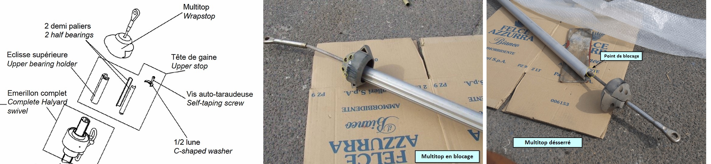A la remise à l’eau en Mai 2016 après hivernage de 6 mois à Nea Paramos (Grèce), nous avons constaté une rotation de l’enrouleur très difficile tant au déroulement qu’à l’enroulement. Nous avons contrôlé le cheminement de la bosse et la raideur de l’étai, puis affalé le génois pour contrôler l’émerillon. Celui-ci était nettement moins dur que le tambour.