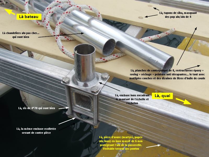 Pour les embases, j’ai vu une solution alternative plus rustique : un tronçon de tube alu au bon diamètre soudé sur le côté de l’échelle....