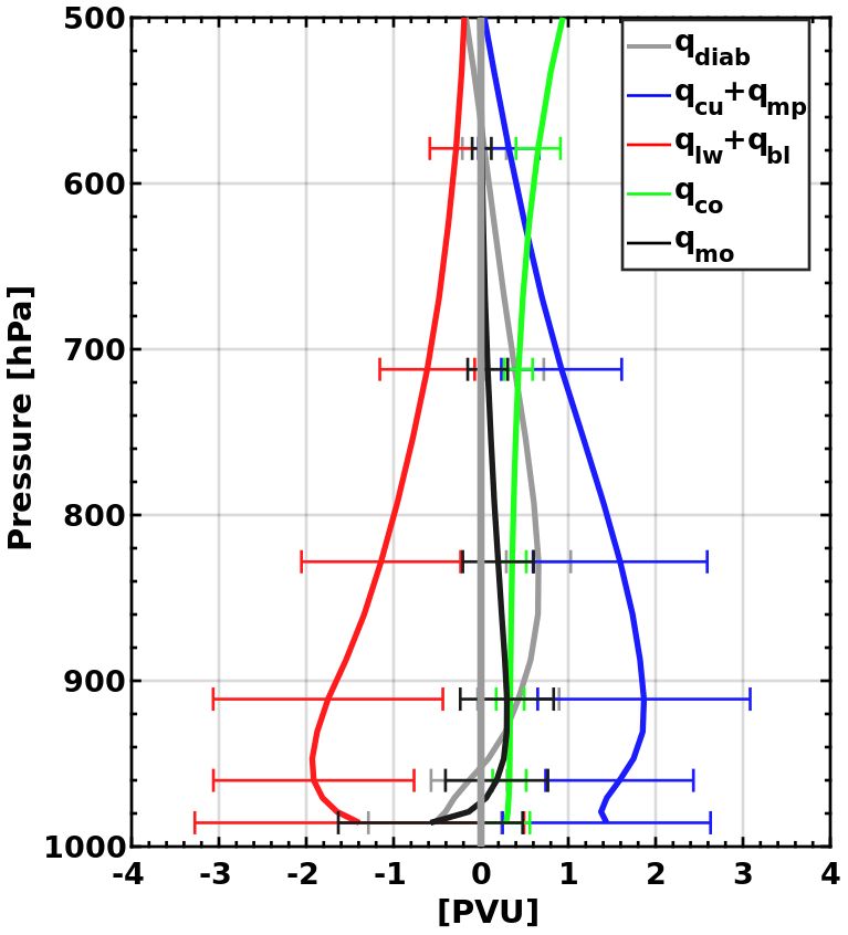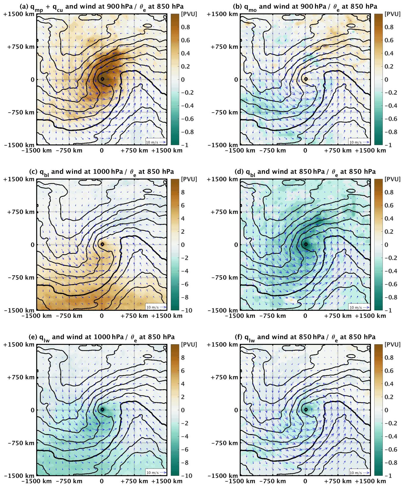 Q : le tourbillon potentiel, le PV (somme de qco, qmp, qcu, qbl, qsw, qlw, qmo et qr (voir équation 5)