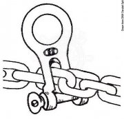 La manille de mouillage “Kong”, distribuée par “Osculati”Manille de mouillage pour raccorder rapidement une seconde ancre sur la chaîne principale. Une manille classique est en effet souvent difficile à introduire dans les maillons serrés d’une chaîne calibrée. Mais aussi, elle permet de frapper facilement un bout sur la chaîne et de reprendre latéralement et de chaque côté la tension pour éviter les à-coups et stabiliser le bateau au mouillage.