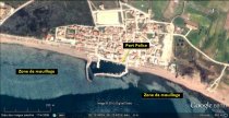 - A l’Ouest, ou à l’Est des passes, juste au sud des môles, bien protégé du meltem sur de bons fonds de sable. On mouille par 3 à 5 mètres de fond