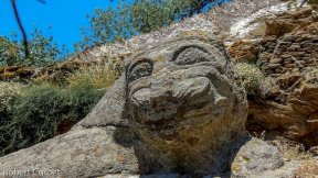 Pas très loin de Ioulida, se trouve le Lion souriant de Kea. Sculpté probablement au 6eme siècle avant Jesus Christ, dans un monobloc. Il aurait été là envoyé par Jupiter, pour protéger les femmes de l’île, des méchantes nymphes qui les tuaient. Mais les nymphes partirent avec leurs sources, laissant Kea aride. Heureusement elles sont revenues (sous la forme des nymphettes sur les plages).