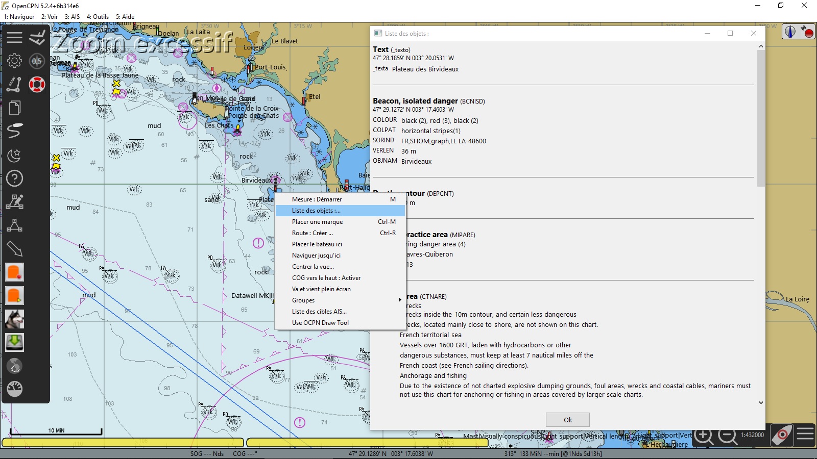 J’ai continué de tester en mettant côte à côte sur mon écran OpenCPN et SeeMyENC, et en visualisant la même région.