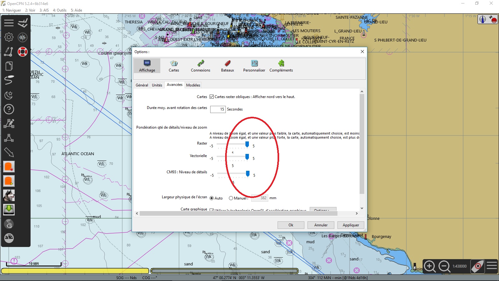 On voit leur prise en compte sur le site OpenCPN :