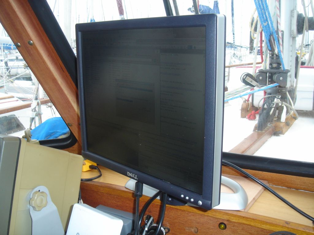 Le résultat est très confortable, ça bouche encore pas mal la vue (sauf si dalle déposée, mais intérêt alors moindre) mais pour OpenCPN que ne ferait-on pas.L’affichage de OpenCPN (ou windows) sur la TV TNT 16/9 (pas cordon DB15) était très décevant, de faible qualité, ce qui m’a jeté dans les bras de ce 17" (1200 x 1024, la classe, et en numérique, pas analogique/VGA)