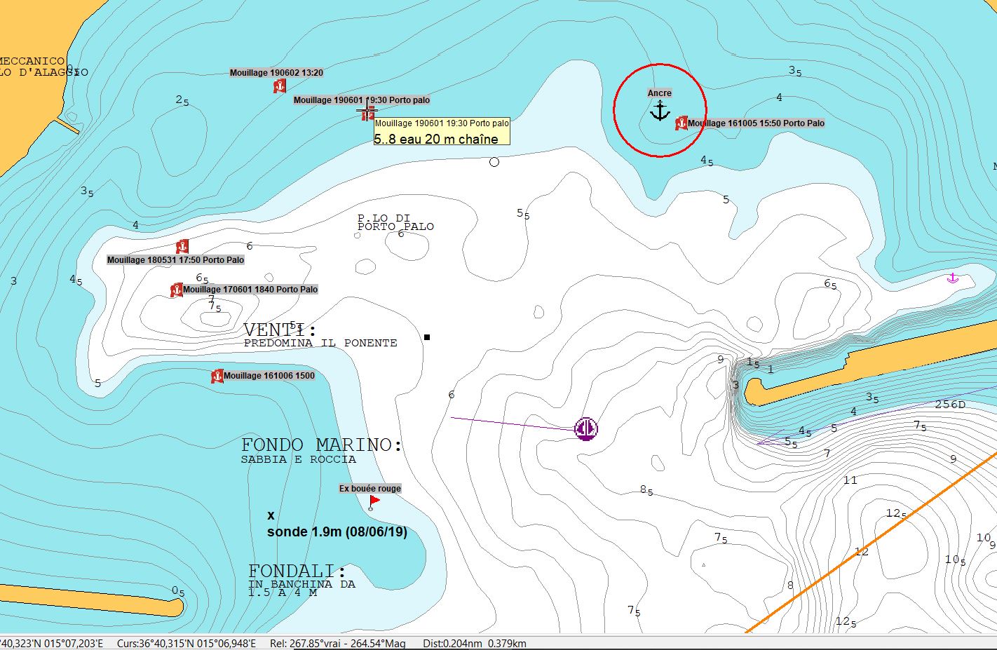 -  Mouillage ouest- On peut se protéger d’un SW raisonnable (on y a tenu par 5/6, sans problème), en cherchant un bon angle de protection sous la jetée ouest