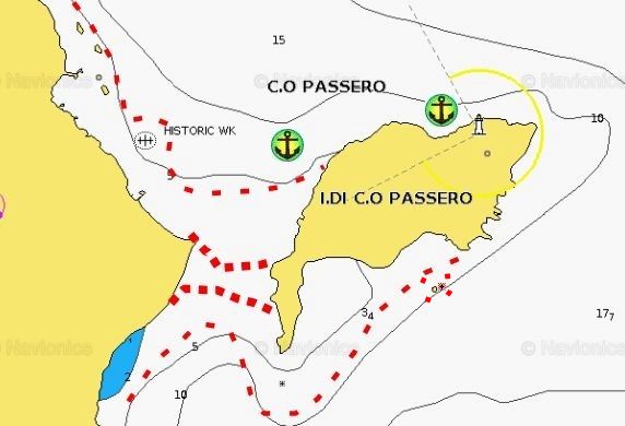 -  A deux milles au NE de la baie de Portopalo, l’île du cap Passero offre un bon abri des vents de sud- Seule la côte N et NW est praticable