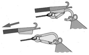 - L’équipier à l’avant laisse tomber la boucle devant l’étrave