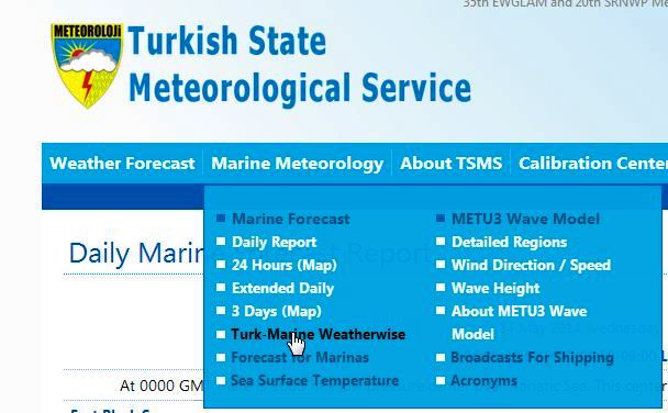 Page de cartes du site de la météo marine turque