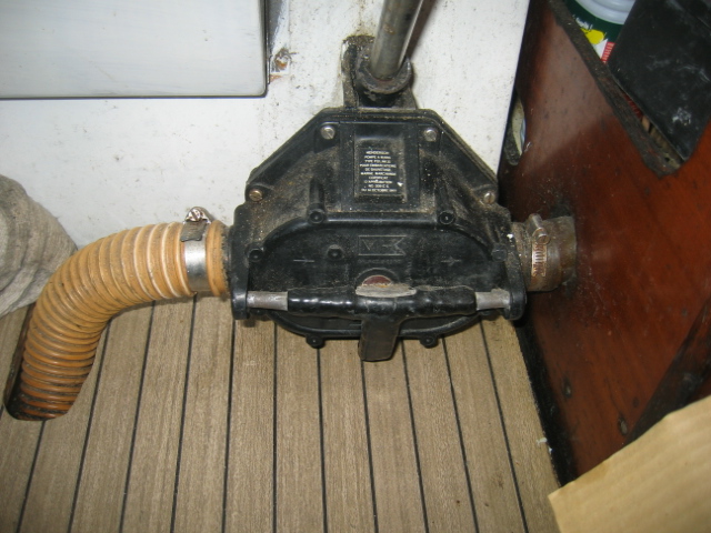 ° sinon, il faut carrément acheter une pompe neuve ; la plupart ont opté pour la MK V ; un dissident s’est rééquipé avec la Thru-Deck Water Pump à poignée amovible de Whale Water systems, qui a l’avantage de s’adapter parfaitement aux trous pratiqués pour la Henderson. En plus, c’est moins cher que la MK V.Je vais donc regarder ce kit et ces deux pompes, et me livrer à des réflexions profondes, en écoutant vos conseils si vous en avez. Sachant qu’évidemment, remplacer une pompe datée de 1965 par un modèle plus récent me causera une douleur profonde ! M’enfin, je reconnais que l’idée de pouvoir évacuer l’eau des fonds en toute sécurité ne manque pas d’intérêt non plus.