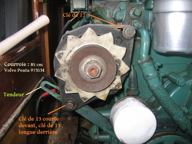 Ah oui Yves, je ne suis pas instruit, mais la rouille qui fait bouffer des courroies, j’ai déjà vu ça sur le moteur d’un copain dont la pompe à eau de mer avait coulé sur la poulie (moteur). Il bouffait une courroie toutes les 10 heures, et cela ne se voyait à peine à l’œil