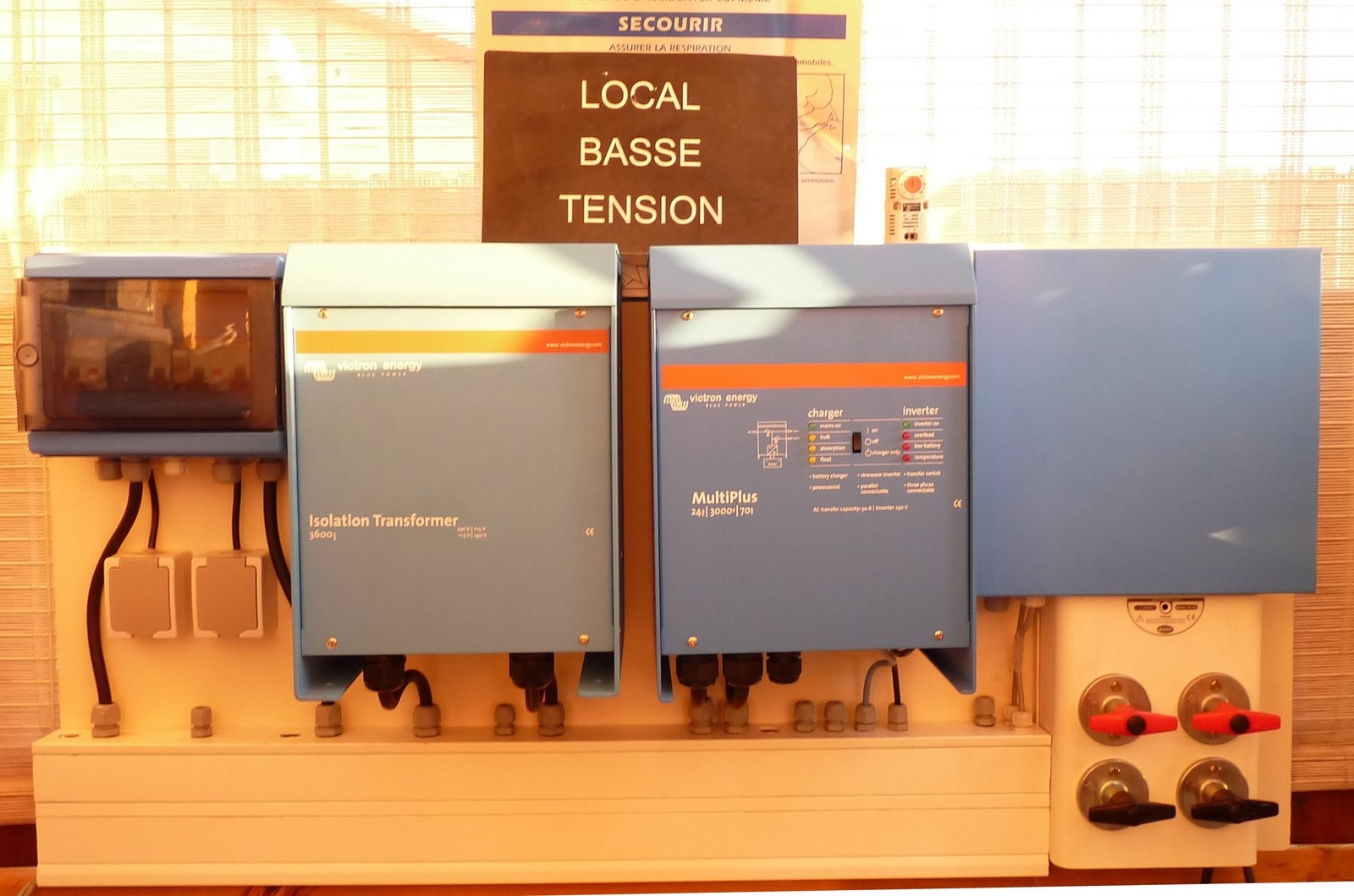 Si tout est branché sur la même borne (borne + de départ du circuit) , lorsqu’on met le chargeur de quai en route cela coupe le Victron et lorsqu’on l’éteint, il se relance.