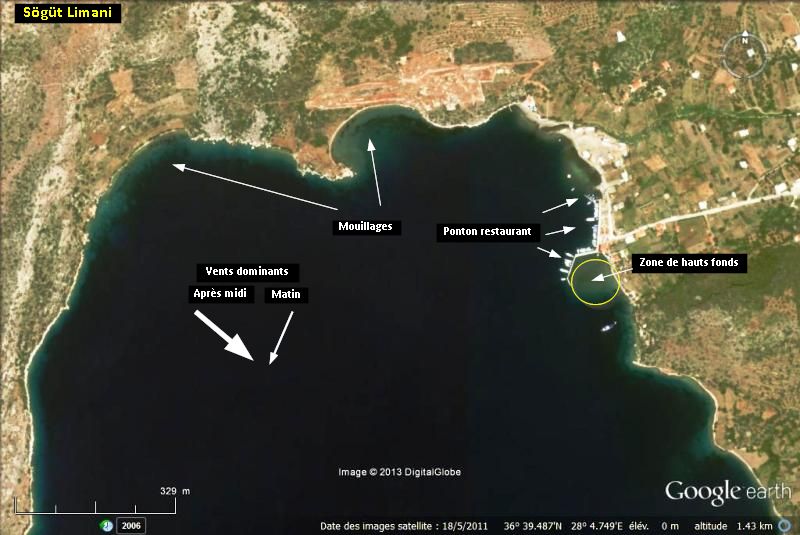 - Sogut Liman, peu fréquentée, avec de bon abris du Meltem, et un ponton restaurant