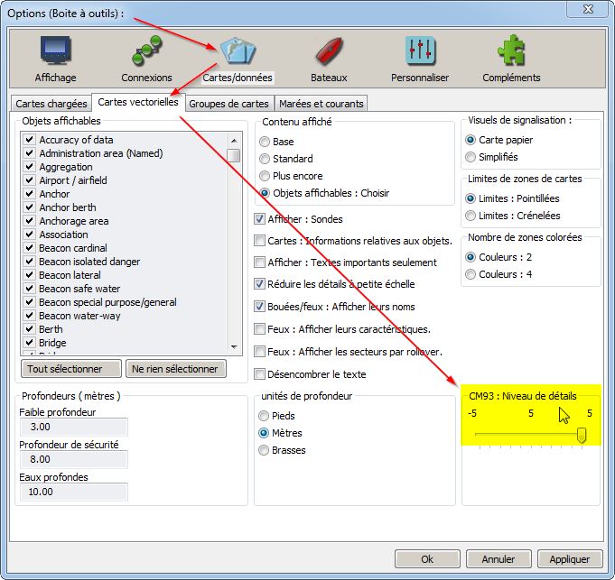 En installant successivement les différentes versions d’ Open CPN, j’ai perdu la fenêtre « CM93 Détails » qui apparaissait directement sur l’écran et permettait d’ajuster rapidement le niveau de détails sans passer par la boîte à outils. Y a-t-i moyen de la faire réapparaître ?