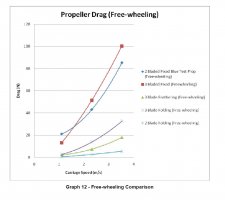 - La plus mauvaise 3 pales repliables a une réduction de traînée de seulement 3 fois par rapport à la meilleure bipale fixe libre en rotation. Alors que l’écart atteint facilement 10 fois pour la meilleure repliable