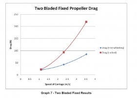 - Ces figures montrent la traînée mesurée expérimentalement avec diverses hélices. On se souvient que 1 m/s vaut environ 2 kn, et que 1 N vaut environ 0.1 kg force.