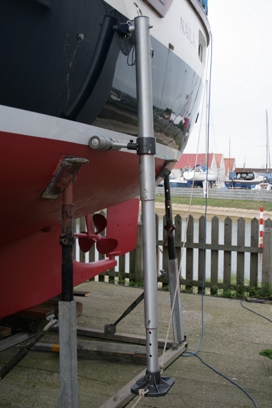 Les miennes (Yltec) télescopiques en galva de 50 mm étaient inquiétantes côté surface il y a déjà 6 ans. J’ignore si elle sont d’origine (le bateau a 35 ans), mais je suis toute l’année en zone d’échouage