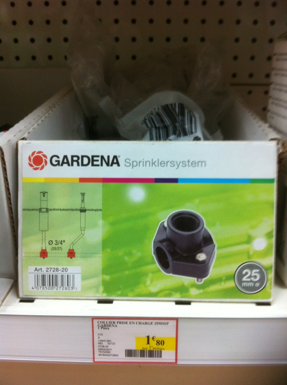C’est étrange, je les ai trouvées chez Leroy-Merlin, Bricodépôt, et Casto (les 3 de ma ville !). Elles sont au rayon distribution de l’eau avec les tuyaux en PER classique ou au rayon arrosage.