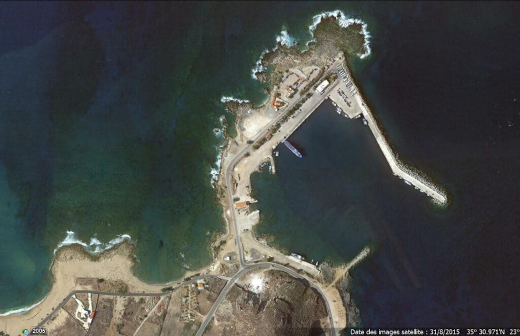 - au SW du golfe Kolpos Kissamos, le port d pêche a ete aménagé pour recevoir des ferries. On doit pouvoir se mettre alongside, sous le vent do môle NE, bien protégé du Meltem