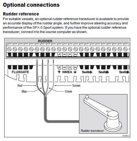 Le calculateur SPX5 n’a pas d’entrée de feed-back donc il ne peut pas connaître l’angle de barre . Il doit utiliser la vieille méthode Autohelm/Raymarine qui consiste à compter les tours du moteur par une astuce électronique.