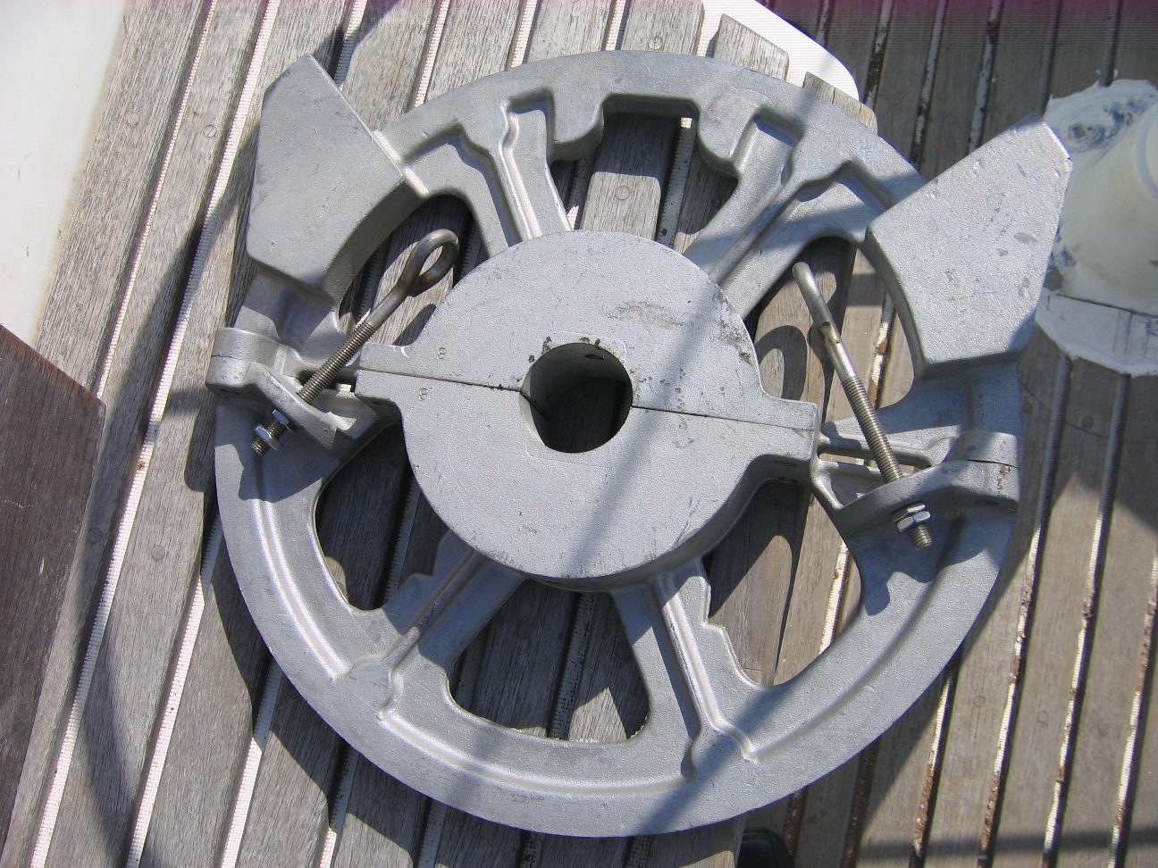 Après réflexions je vais me contenter de changer l’unité de puissance pour le reste de ma croisière. La pose d’un pilote sur vérin est d’une part coûteuse pour mon budget année sabbatique, encore qu’il est toujours possible de casser la tirelire, mais l’installation ne peut se faire sans une étude préalable du fonds de mon coffre arrière, un renfort en stratifié, enfin un nombre de travaux qui ne peuvent s’envisager dans l’urgence. Donc stand-by jusqu’au retour en France. Mais la solution passera inévitablement par l’installation d’un vérin. Précision le calculateur du SPX5 est insuffisant pour alimenter un pilote sur vérin, il faut soit le 10 ou le 30. En attendant j’ai, avec mes 2 gear box cassés, remis en état 1 gear box complet. Au cas où le neuf casserait à nouveau.