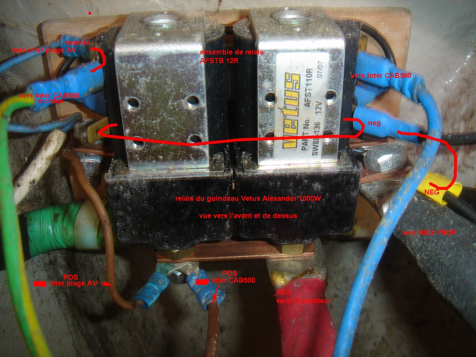 en inversant les connexions du guindeau peut tourner soit dans un sens soit dans l’autre