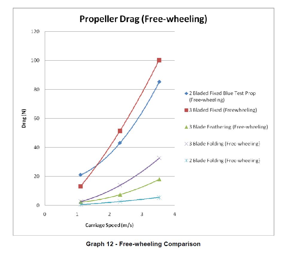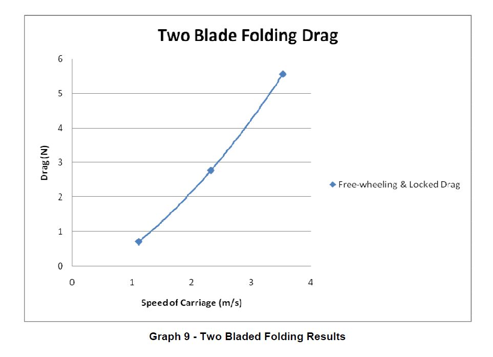 « La plus mauvaise 3 pales repliables a une réduction de traînée de seulement 3 fois par rapport à la meilleure bipale fixe libre en rotation. Alors que l’écart atteint facilement 10 fois pour la meilleure repliable »