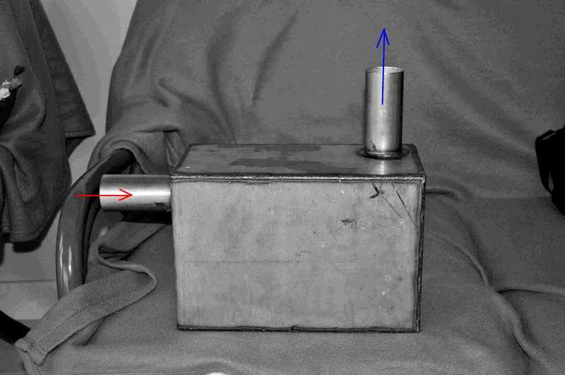 Je n’ai pas de problème à priori de volume sur le splendide waterlock en inox (matière très décrié pour cet objet cause corrosion) dont je joins la photo, mais je suis dubitatif : où sont donc l’entrée et la sortie, sachant que le tube vertical plonge jusqu’à 1 cm du fond et le tube horizontal ne pénètre quasiment pas à l’intérieur de la boîte ?