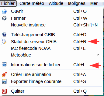zyGrib informe en permanence de l’état de ses chargements et du traitement des données GFS de la NOAA. On dispose de deux outils accessibles depuis l’interface graphique de zyGrib