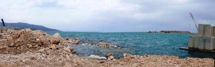 - Etat de l’avancement des travaux du môle SW : remblayé sur ses deux tiers. On trouve 10 m d’eau à l’extrémité actuelle du môle