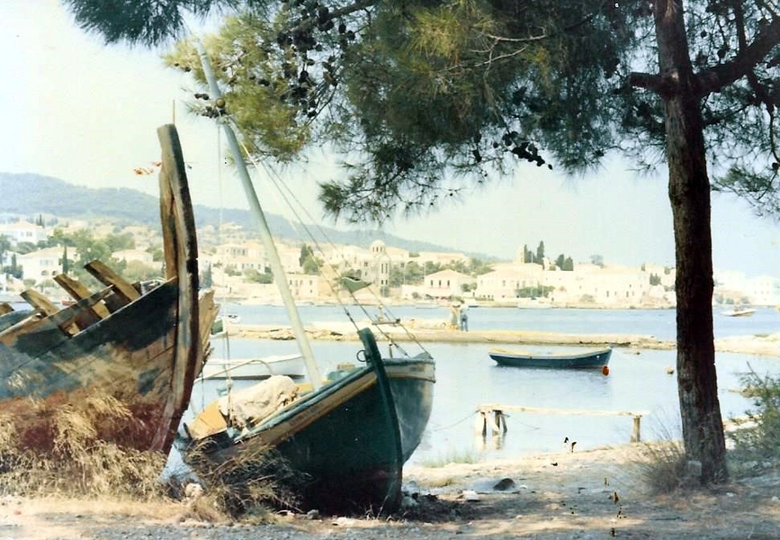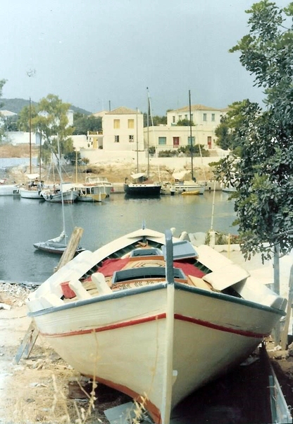 - A Spetsai, l’escale en baie Baltiza, nous fit passer devant des chantiers où l’on construisait en bois de jolis bateaux de pêche. On alla mettre le cul à quai juste au fond, étonnés que ce petit port ne soit fréquenté que par deux ou trois yachts. Où étaient passés les pétaradants et gros cabains cruisers ?