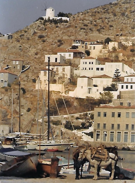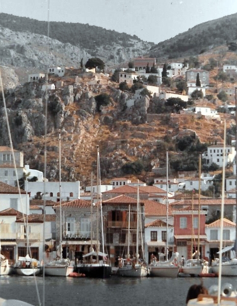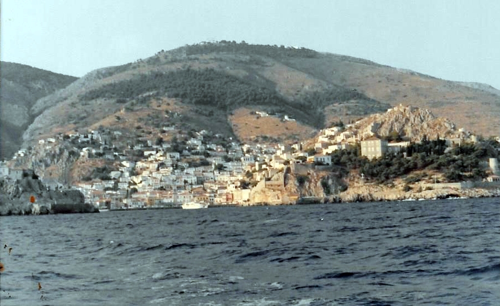 - Arrivés de bonne heure à Hydra, on n’eut pas de mal à trouver un trou entre deux yachts pour mettre notre cul à quai. Evidemment, dès la fin de la matinée, les navires à passagers déversèrent la foule venue d’Athènes. Heureusement, nous étions déjà en piste sur les hauteurs de l’île, dans les ruelles ombragées et fleuries, vides de touristes, ceux-ci n’aimant pas grimper les degrés des paliers et encore moins la pente des rues de plus en plus étroites menant jusqu’au sommet de la montagne, point culminant du village (600mètres), là où l’air est plus léger, plus parfumé, là ou la vue est imprenable sur la ville étagée en contrebas, le port en demi cercle et la baie d’Hydra parsemée d’îles et d’îlots avec pour arrière plan les hautes montagnes d’Argolide.