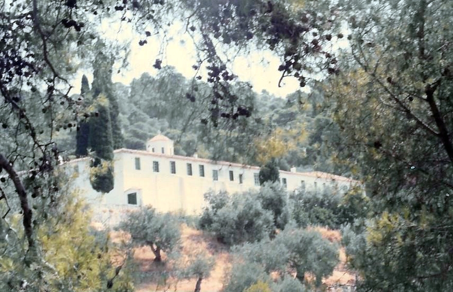 - Grimpant dans la montagne, on arriva au pittoresque couvent de la Panagnia (la Vierge). Les moines étaient accueillants, mais il fallait avoir une tenue décente, notamment porter des pantalons, surtout pas de shorts pour les hommes et bien entendu, des robes longues pour les femmes. Moyennant une modeste obole… il n’y a pas de petits profits… pour servir Dieu un peu mieux, on emprunta de longs coupons de tissus de bure bleu gris, roulés en robe à partir de la taille. Certes, ces robes sentaient un peu l’aigre, (l’odeur de sainteté ?)...mais ils nous firent beaucoup rire... et les moines furent ravis.