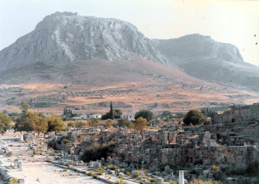 - L’Acrocorinthe, l’antique Acropole, immense forteresse qui surplombe la ville de Corinthe recèle les traces de tous les envahisseurs du Péloponnèse, quoiqu’il ait tout de même fallu cinq ans de siège aux Francs pour s’en emparer. On y monta pour jouir d’un panorama unique. Vue de l’isthme, des hautes montagnes continentales du Parnasse dans le Nord lointain, du golfe et l’île de Salamine à droite, ainsi que celle du golfe de Corinthe à gauche.