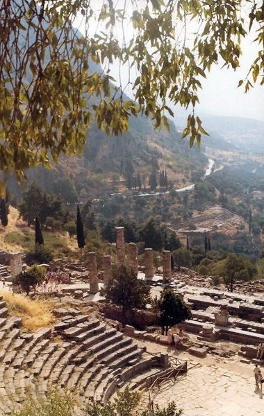 - Rejoignant la côte Nord du Golfe, mouillage en baie d’Antikira (Isidorou) avant d’aller s’amarrer le long du môle à Itéa. Bien ficelé au quai en solide béton, le voilier ne risquant en principe rien, nous allions pouvoir de visiter Delphes situé à une trentaine de kilomètres sur les flancs de la chaîne du Parnasse.