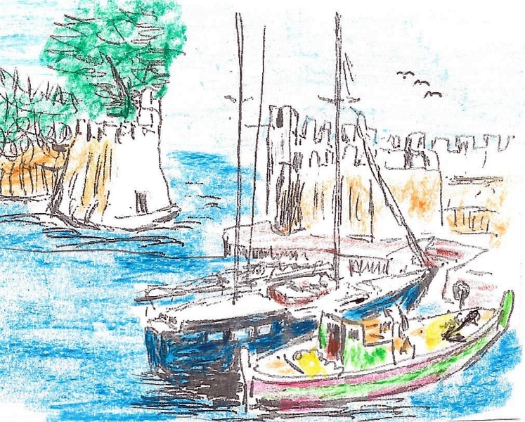 - Il y avait un tout petit quai le long du rempart ouest qui offrait peu de places aux plaisanciers de passages. Autrement, c’était un entrelacement d’aussières et cordages tendus d’un bord à l’autre du bassin par les barques des pêcheurs.